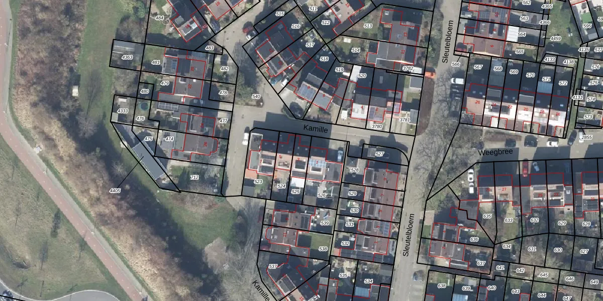 Het perceel waarop Kamille 3 staat heeft een oppervlakte van 121 m². Dit is een middelgroot perceel. De perceeloppervlakte wordt geregistreerd door het Kadaster. Gedetailleerde informatie over de maten van dit perceel kunt u vinden in het rapport Kadastrale kaart met maatvoering van Kamille 3.