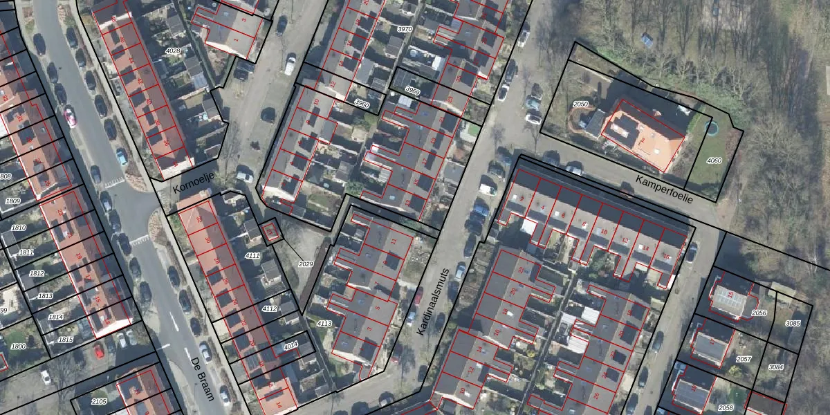 Het perceel waarop Kardinaalsmuts 13 staat heeft een oppervlakte van 3487 m². Dit is een zeer groot perceel. De perceeloppervlakte wordt geregistreerd door het Kadaster. Gedetailleerde informatie over de maten van dit perceel kunt u vinden in het rapport Kadastrale kaart met maatvoering van Kardinaalsmuts 13.