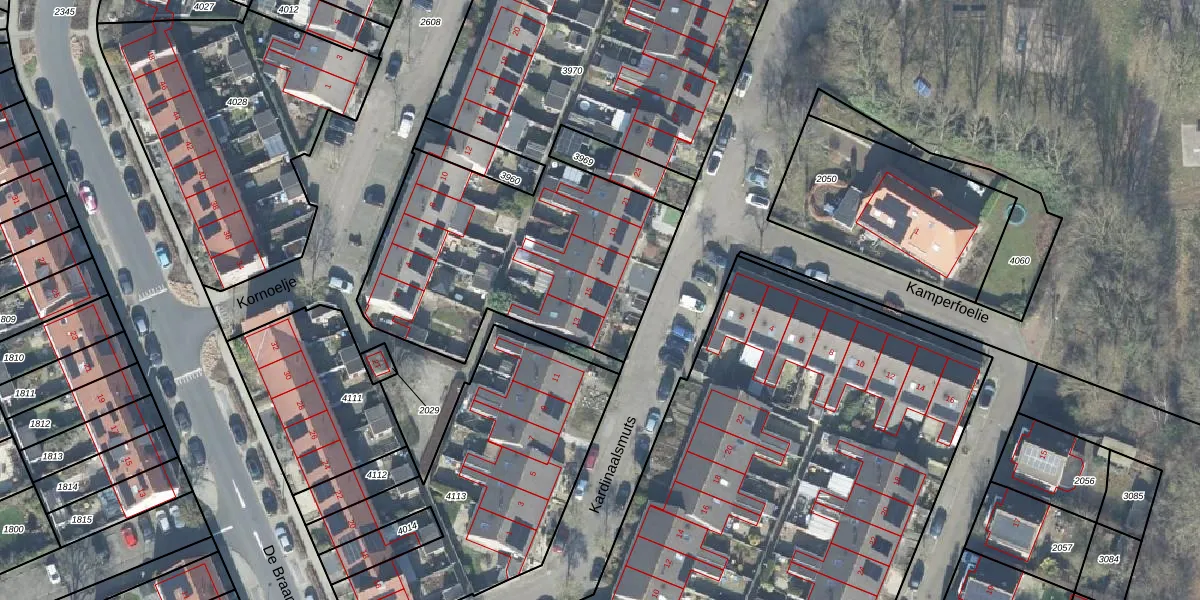 Het perceel waarop Kardinaalsmuts 15 staat heeft een oppervlakte van 3487 m². Dit is een zeer groot perceel. De perceeloppervlakte wordt geregistreerd door het Kadaster. Gedetailleerde informatie over de maten van dit perceel kunt u vinden in het rapport Kadastrale kaart met maatvoering van Kardinaalsmuts 15.