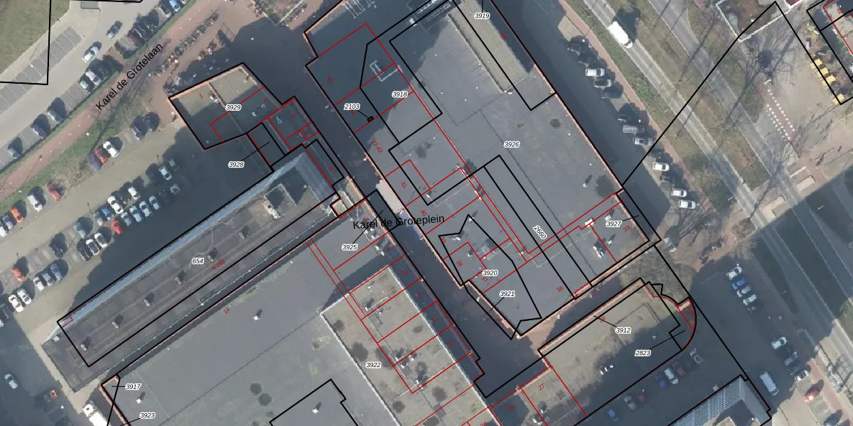 Het perceel waarop Karel de Groteplein 40 staat heeft een oppervlakte van 1330 m². Dit is een zeer groot perceel. De perceeloppervlakte wordt geregistreerd door het Kadaster. Gedetailleerde informatie over de maten van dit perceel kunt u vinden in het rapport Kadastrale kaart met maatvoering van Karel de Groteplein 40.