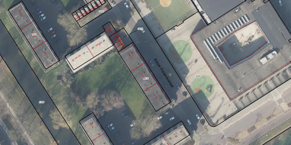 Het perceel waarop Keizer Frederikstraat 109 staat heeft een oppervlakte van 587 m². Dit is een groot perceel. De perceeloppervlakte wordt geregistreerd door het Kadaster. Gedetailleerde informatie over de maten van dit perceel kunt u vinden in het rapport Kadastrale kaart met maatvoering van Keizer Frederikstraat 109.