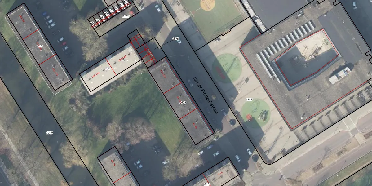Het perceel waarop Keizer Frederikstraat 111 staat heeft een oppervlakte van 587 m². Dit is een groot perceel. De perceeloppervlakte wordt geregistreerd door het Kadaster. Gedetailleerde informatie over de maten van dit perceel kunt u vinden in het rapport Kadastrale kaart met maatvoering van Keizer Frederikstraat 111.
