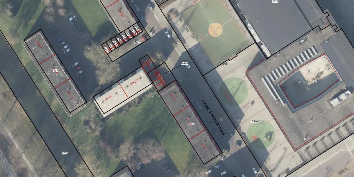 Het perceel waarop Keizer Frederikstraat 127 staat heeft een oppervlakte van 587 m². Dit is een groot perceel. De perceeloppervlakte wordt geregistreerd door het Kadaster. Gedetailleerde informatie over de maten van dit perceel kunt u vinden in het rapport Kadastrale kaart met maatvoering van Keizer Frederikstraat 127.