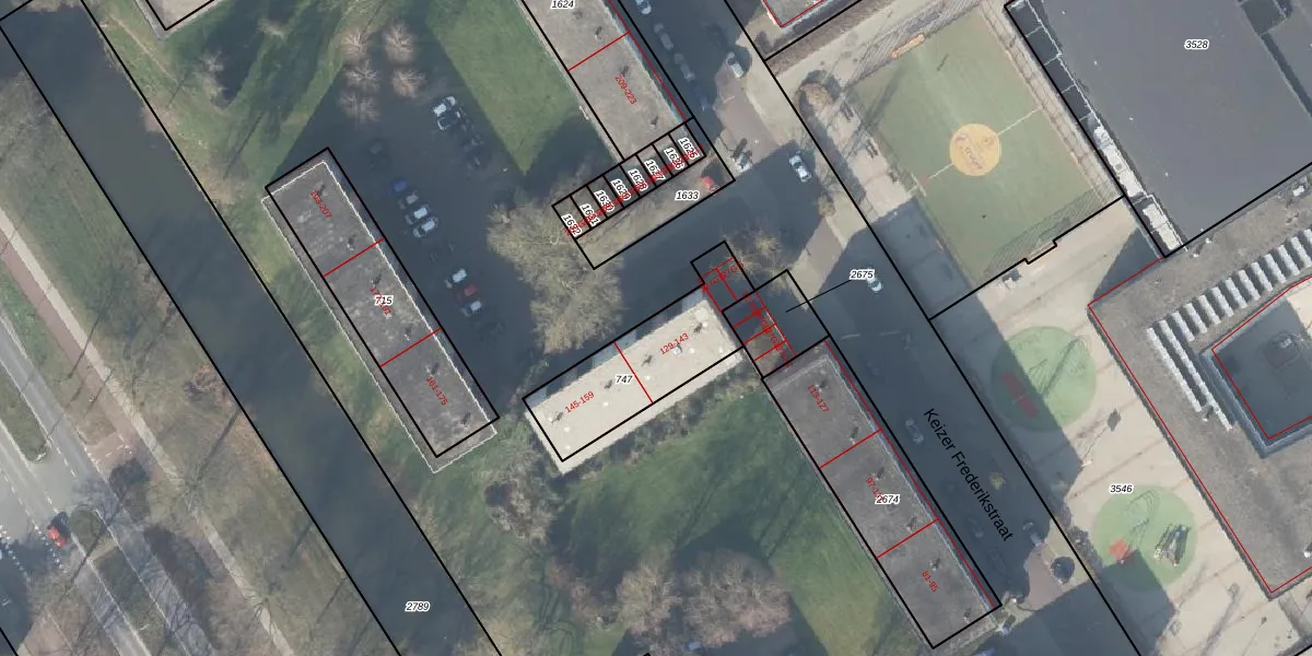 Het perceel waarop Keizer Frederikstraat 143 staat heeft een oppervlakte van 414 m². Dit is een groot perceel. De perceeloppervlakte wordt geregistreerd door het Kadaster. Gedetailleerde informatie over de maten van dit perceel kunt u vinden in het rapport Kadastrale kaart met maatvoering van Keizer Frederikstraat 143.