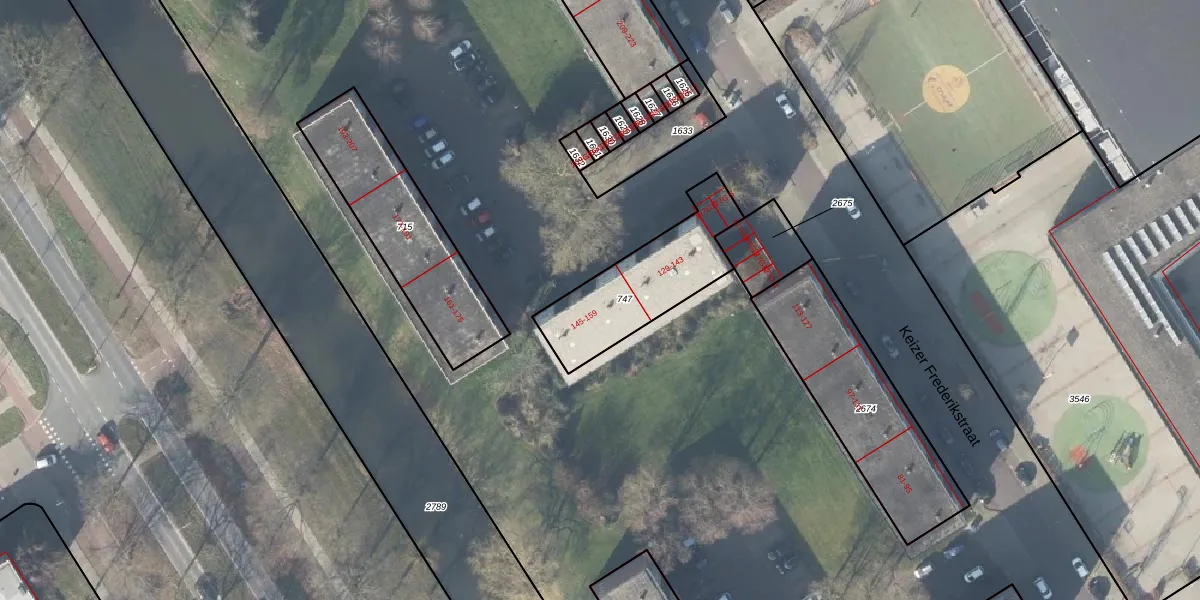 Het perceel waarop Keizer Frederikstraat 147 staat heeft een oppervlakte van 414 m². Dit is een groot perceel. De perceeloppervlakte wordt geregistreerd door het Kadaster. Gedetailleerde informatie over de maten van dit perceel kunt u vinden in het rapport Kadastrale kaart met maatvoering van Keizer Frederikstraat 147.