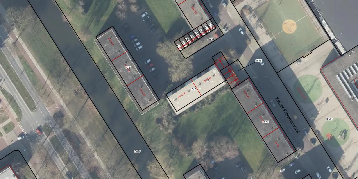 Het perceel waarop Keizer Frederikstraat 159 staat heeft een oppervlakte van 414 m². Dit is een groot perceel. De perceeloppervlakte wordt geregistreerd door het Kadaster. Gedetailleerde informatie over de maten van dit perceel kunt u vinden in het rapport Kadastrale kaart met maatvoering van Keizer Frederikstraat 159.