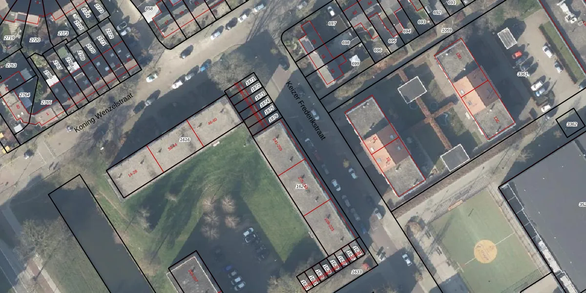 Het perceel waarop Keizer Frederikstraat 241 staat heeft een oppervlakte van 587 m². Dit is een groot perceel. De perceeloppervlakte wordt geregistreerd door het Kadaster. Gedetailleerde informatie over de maten van dit perceel kunt u vinden in het rapport Kadastrale kaart met maatvoering van Keizer Frederikstraat 241.