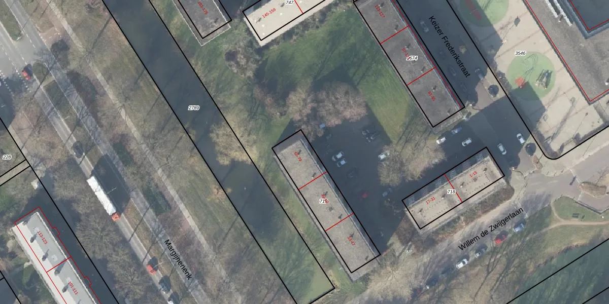 Het perceel waarop Keizer Frederikstraat 77 staat heeft een oppervlakte van 538 m². Dit is een groot perceel. De perceeloppervlakte wordt geregistreerd door het Kadaster. Gedetailleerde informatie over de maten van dit perceel kunt u vinden in het rapport Kadastrale kaart met maatvoering van Keizer Frederikstraat 77.