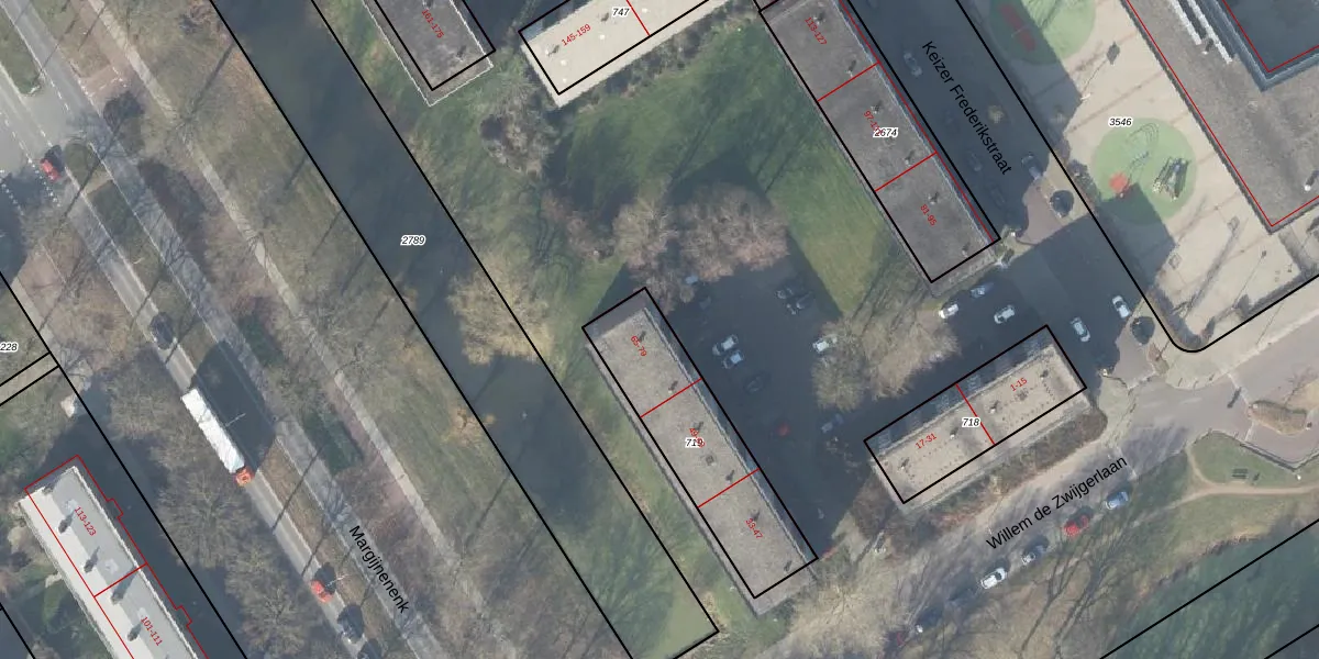 Het perceel waarop Keizer Frederikstraat 79 staat heeft een oppervlakte van 538 m². Dit is een groot perceel. De perceeloppervlakte wordt geregistreerd door het Kadaster. Gedetailleerde informatie over de maten van dit perceel kunt u vinden in het rapport Kadastrale kaart met maatvoering van Keizer Frederikstraat 79.