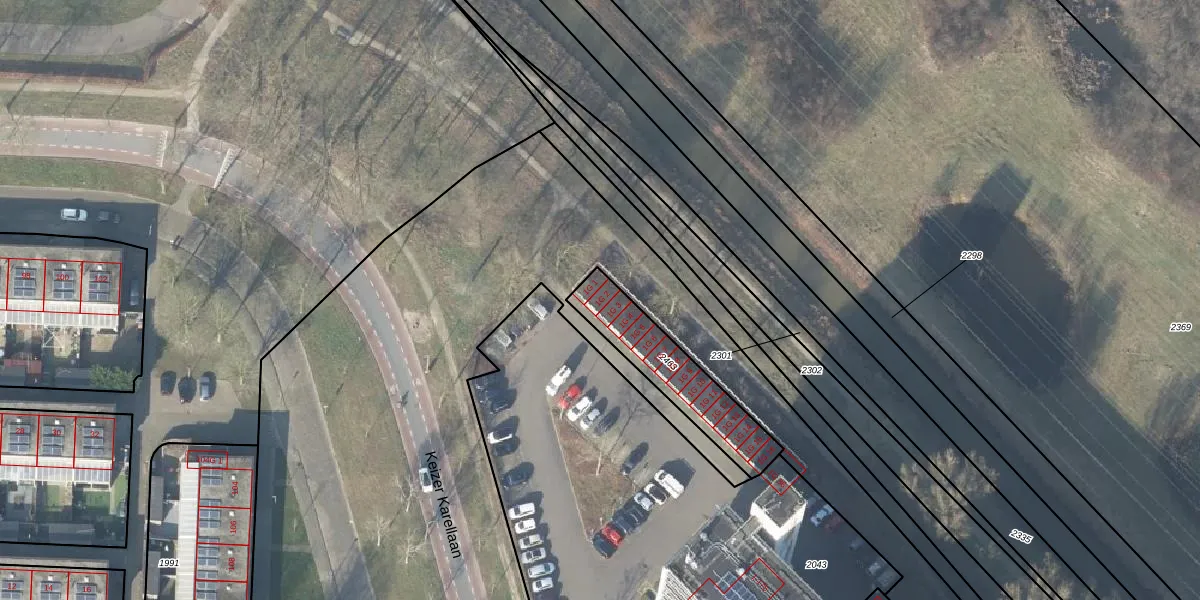 Het perceel waarop Keizer Karellaan 1-G-2 staat heeft een oppervlakte van 320 m². Dit is een groot perceel. De perceeloppervlakte wordt geregistreerd door het Kadaster. Gedetailleerde informatie over de maten van dit perceel kunt u vinden in het rapport Kadastrale kaart met maatvoering van Keizer Karellaan 1-G-2.