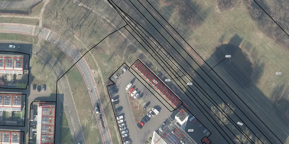 Het perceel waarop Keizer Karellaan 1-G-4 staat heeft een oppervlakte van 320 m². Dit is een groot perceel. De perceeloppervlakte wordt geregistreerd door het Kadaster. Gedetailleerde informatie over de maten van dit perceel kunt u vinden in het rapport Kadastrale kaart met maatvoering van Keizer Karellaan 1-G-4.