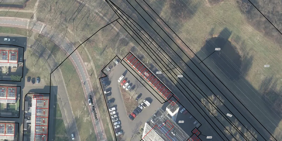 Het perceel waarop Keizer Karellaan 1-G-6 staat heeft een oppervlakte van 320 m². Dit is een groot perceel. De perceeloppervlakte wordt geregistreerd door het Kadaster. Gedetailleerde informatie over de maten van dit perceel kunt u vinden in het rapport Kadastrale kaart met maatvoering van Keizer Karellaan 1-G-6.
