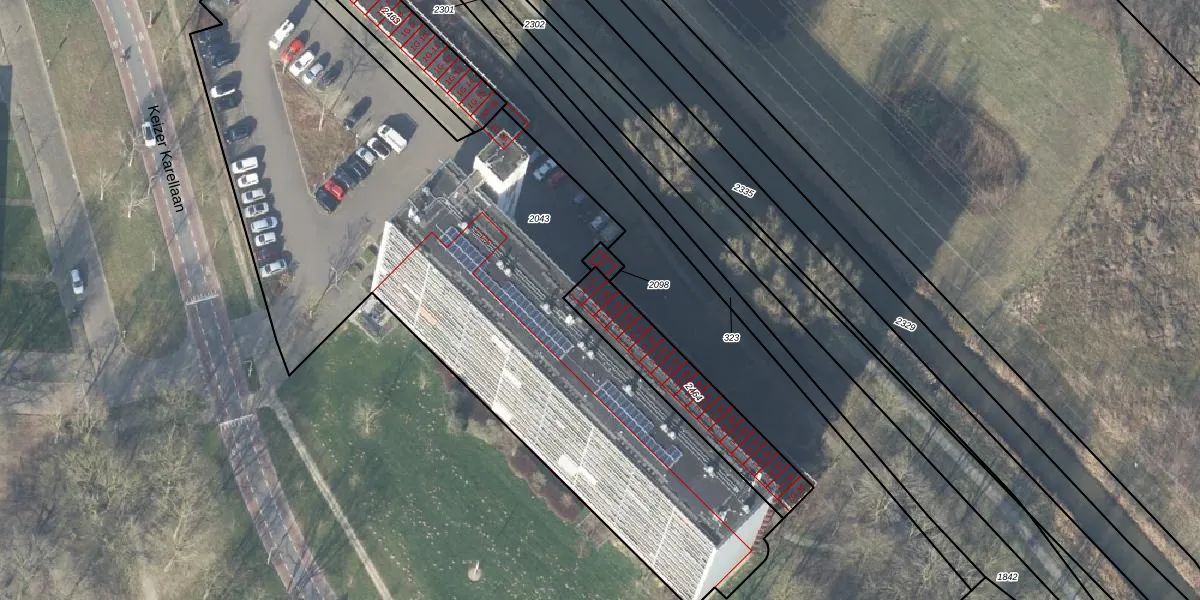 Het perceel waarop Keizer Karellaan 1-G-18 staat heeft een oppervlakte van 389 m². Dit is een groot perceel. De perceeloppervlakte wordt geregistreerd door het Kadaster. Gedetailleerde informatie over de maten van dit perceel kunt u vinden in het rapport Kadastrale kaart met maatvoering van Keizer Karellaan 1-G-18.