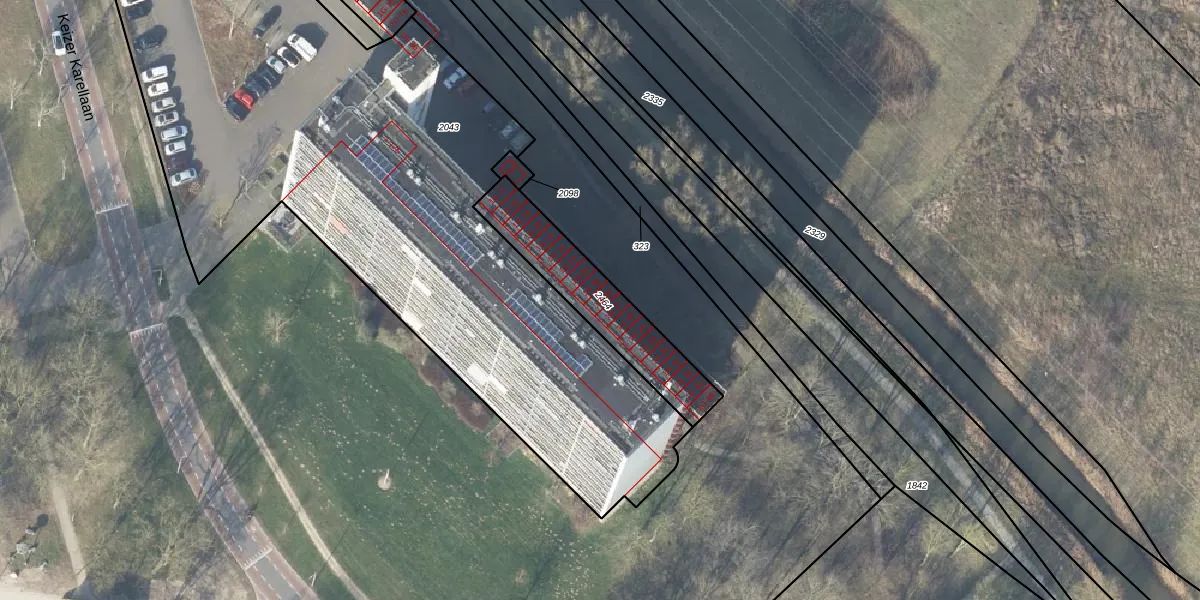 Het perceel waarop Keizer Karellaan 1-G-26 staat heeft een oppervlakte van 389 m². Dit is een groot perceel. De perceeloppervlakte wordt geregistreerd door het Kadaster. Gedetailleerde informatie over de maten van dit perceel kunt u vinden in het rapport Kadastrale kaart met maatvoering van Keizer Karellaan 1-G-26.
