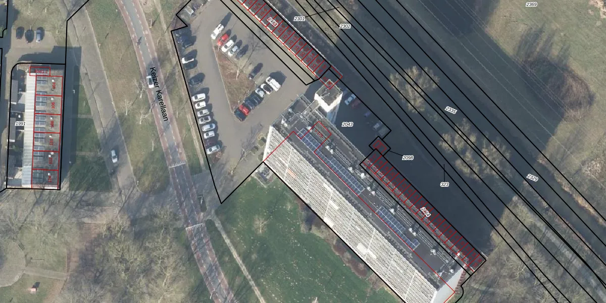 Keizer Karellaan 3 is gelegen op kadastraal perceel DVT00F2043. Deze kadastrale aanduiding is uniek en wordt gebruikt door het Kadaster om eigendomsrechten en andere zakelijke rechten vast te leggen. Het perceel maakt onderdeel uit van de kadastrale gemeente Deventer.