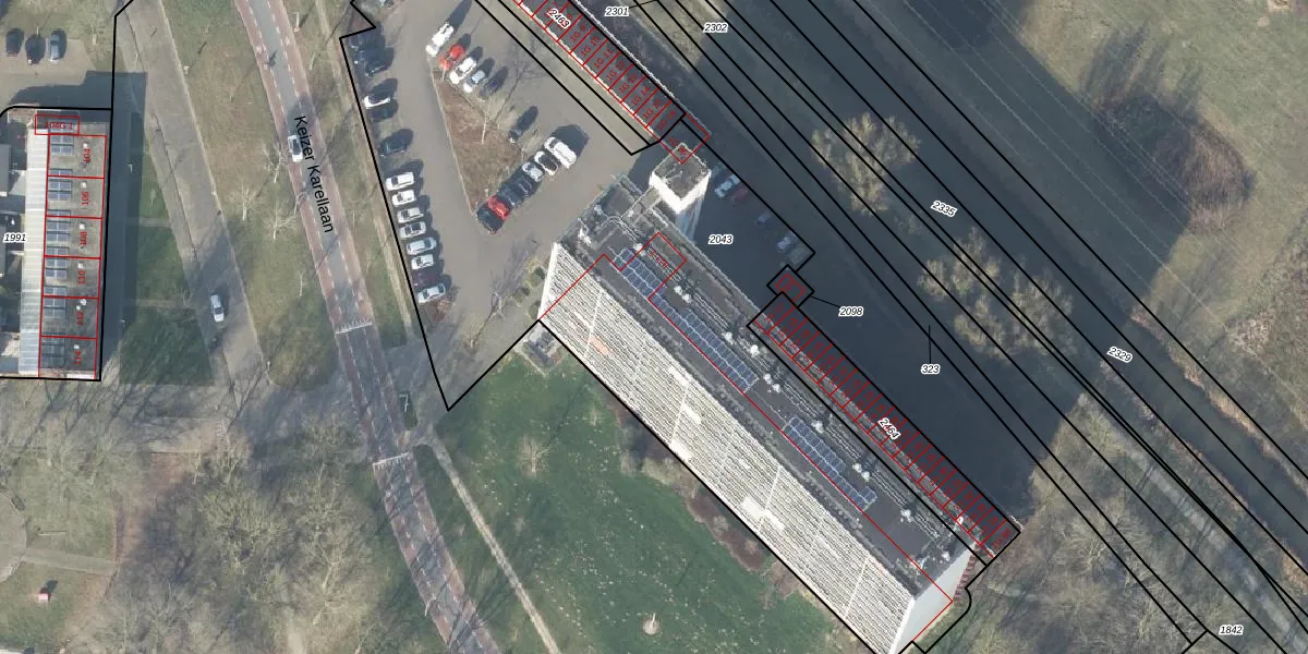 Keizer Karellaan 7 is gelegen op kadastraal perceel DVT00F2043. Deze kadastrale aanduiding is uniek en wordt gebruikt door het Kadaster om eigendomsrechten en andere zakelijke rechten vast te leggen. Het perceel maakt onderdeel uit van de kadastrale gemeente Deventer.
