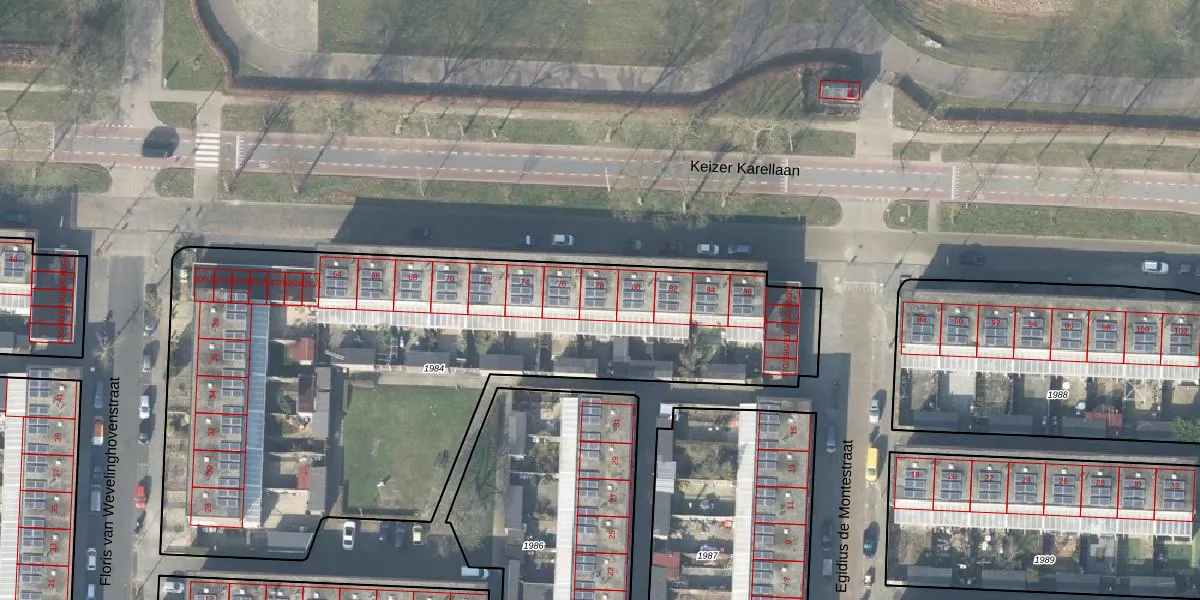 Het perceel waarop Keizer Karellaan 78 staat heeft een oppervlakte van 3475 m². Dit is een zeer groot perceel. De perceeloppervlakte wordt geregistreerd door het Kadaster. Gedetailleerde informatie over de maten van dit perceel kunt u vinden in het rapport Kadastrale kaart met maatvoering van Keizer Karellaan 78.