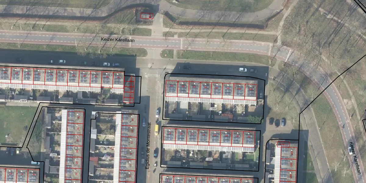 Het perceel waarop Keizer Karellaan 90 staat heeft een oppervlakte van 1393 m². Dit is een zeer groot perceel. De perceeloppervlakte wordt geregistreerd door het Kadaster. Gedetailleerde informatie over de maten van dit perceel kunt u vinden in het rapport Kadastrale kaart met maatvoering van Keizer Karellaan 90.