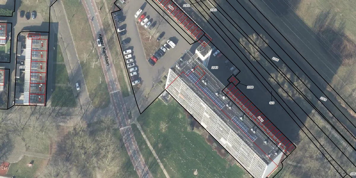 Keizer Karellaan 91 is gelegen op kadastraal perceel DVT00F2043. Deze kadastrale aanduiding is uniek en wordt gebruikt door het Kadaster om eigendomsrechten en andere zakelijke rechten vast te leggen. Het perceel maakt onderdeel uit van de kadastrale gemeente Deventer.