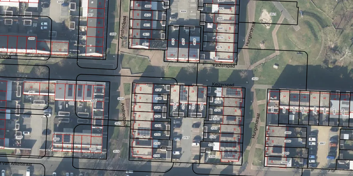 Het perceel waarop Keizerspad 24 staat heeft een oppervlakte van 94 m². Dit is een klein perceel. De perceeloppervlakte wordt geregistreerd door het Kadaster. Gedetailleerde informatie over de maten van dit perceel kunt u vinden in het rapport Kadastrale kaart met maatvoering van Keizerspad 24.