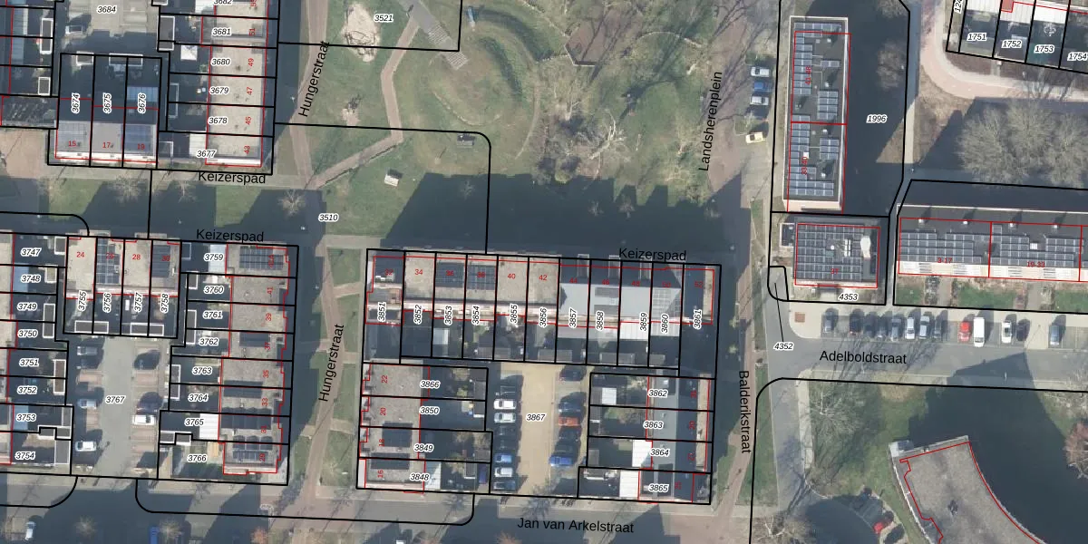 Gebruik de zoekbalk of klik op een perceel voor informatie over de adressen binnen dit perceel.