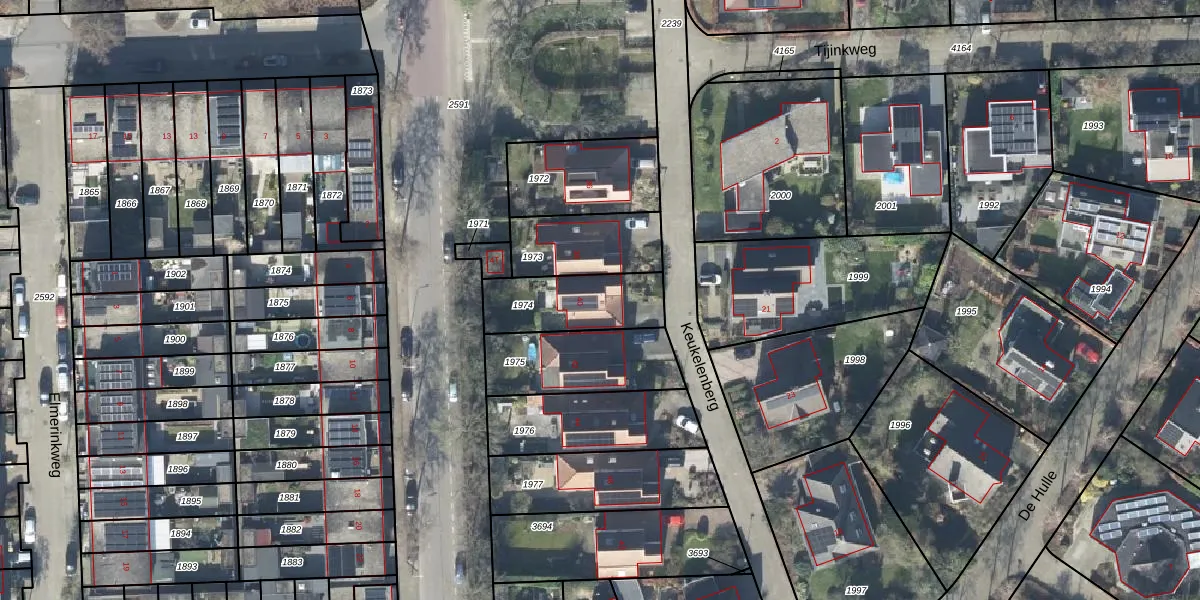 Gebruik de zoekbalk of klik op een perceel voor informatie over de adressen binnen dit perceel.