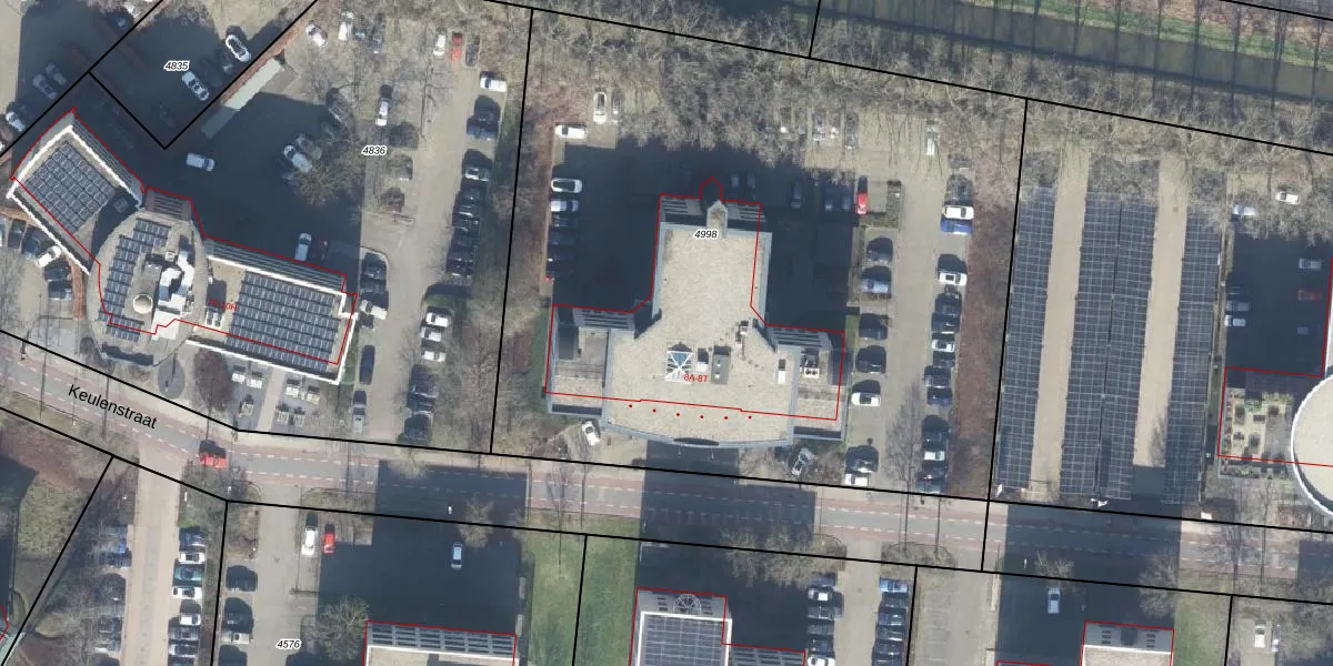 Het perceel waarop Keulenstraat 8-G staat heeft een oppervlakte van 4812 m². Dit is een zeer groot perceel. De perceeloppervlakte wordt geregistreerd door het Kadaster. Gedetailleerde informatie over de maten van dit perceel kunt u vinden in het rapport Kadastrale kaart met maatvoering van Keulenstraat 8-G.