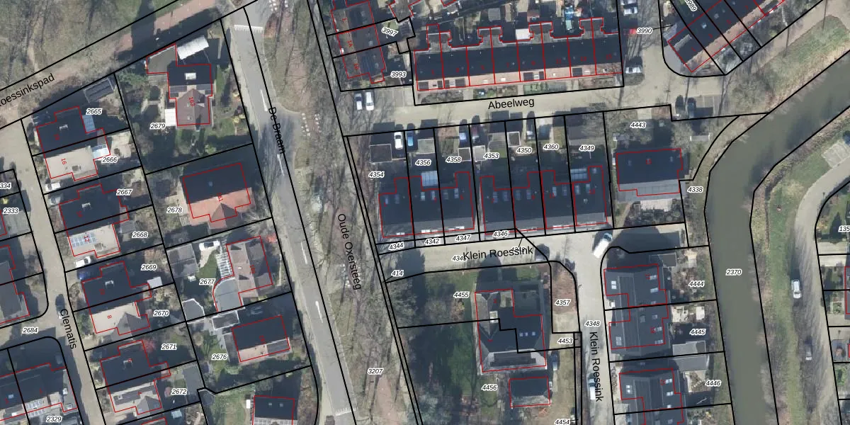 Gebruik de zoekbalk of klik op een perceel voor informatie over de adressen binnen dit perceel.