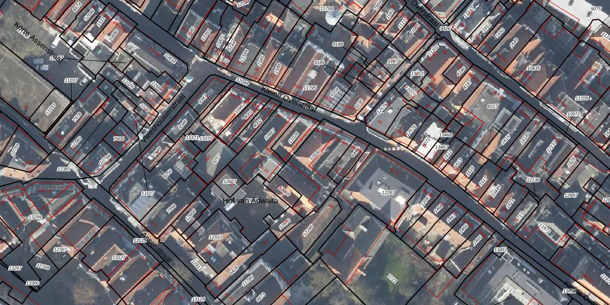 Het perceel waarop Kleine Overstraat 34-D staat heeft een oppervlakte van 402 m². Dit is een groot perceel. De perceeloppervlakte wordt geregistreerd door het Kadaster. Gedetailleerde informatie over de maten van dit perceel kunt u vinden in het rapport Kadastrale kaart met maatvoering van Kleine Overstraat 34-D.