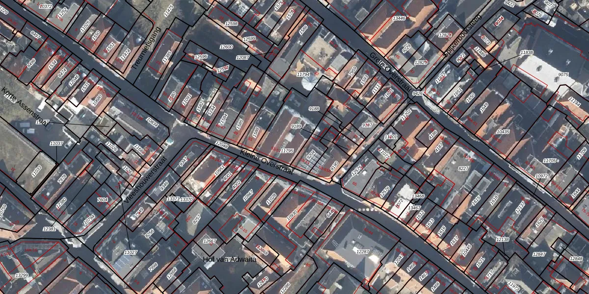 Het perceel waarop Kleine Overstraat 57 staat heeft een oppervlakte van 375 m². Dit is een groot perceel. De perceeloppervlakte wordt geregistreerd door het Kadaster. Gedetailleerde informatie over de maten van dit perceel kunt u vinden in het rapport Kadastrale kaart met maatvoering van Kleine Overstraat 57.