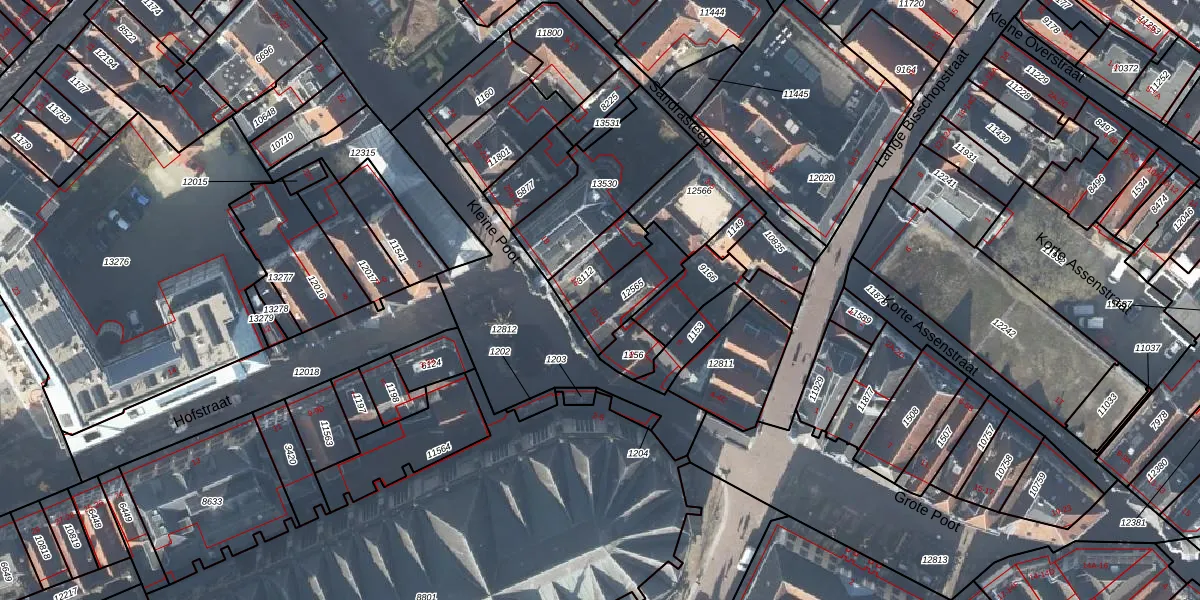 Kleine Poot 12 is gelegen op kadastraal perceel DVT00E12565. Deze kadastrale aanduiding is uniek en wordt gebruikt door het Kadaster om eigendomsrechten en andere zakelijke rechten vast te leggen. Het perceel maakt onderdeel uit van de kadastrale gemeente Deventer.