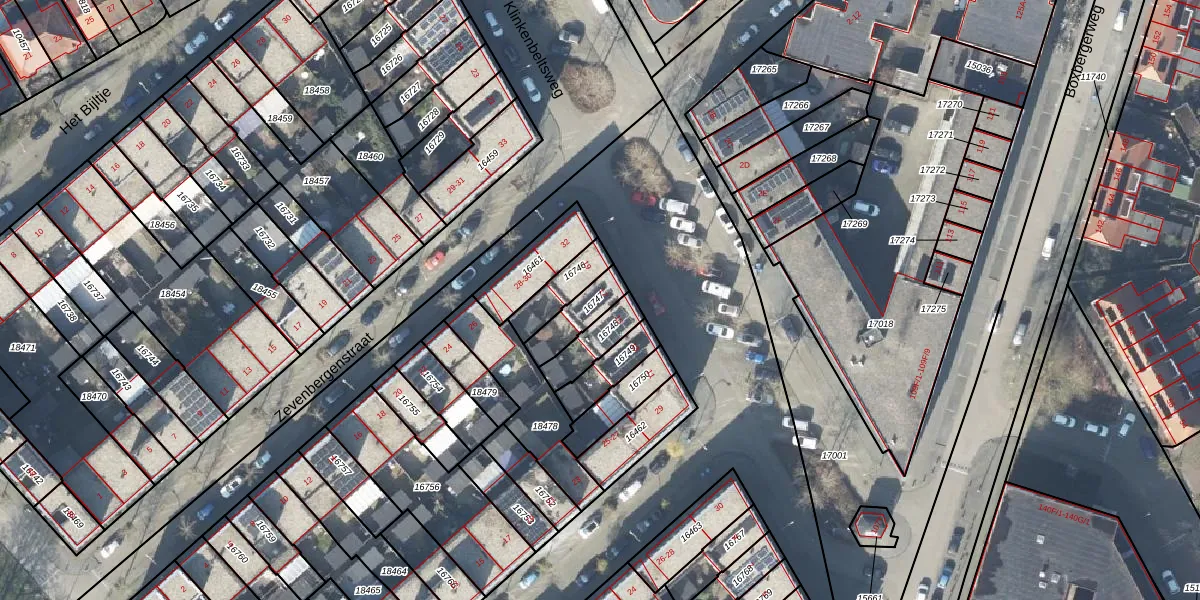 Gebruik de zoekbalk of klik op een perceel voor informatie over de adressen binnen dit perceel.