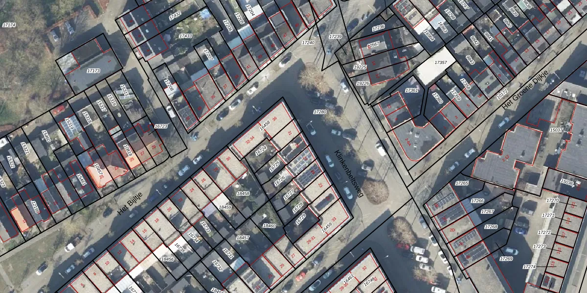 Gebruik de zoekbalk of klik op een perceel voor informatie over de adressen binnen dit perceel.