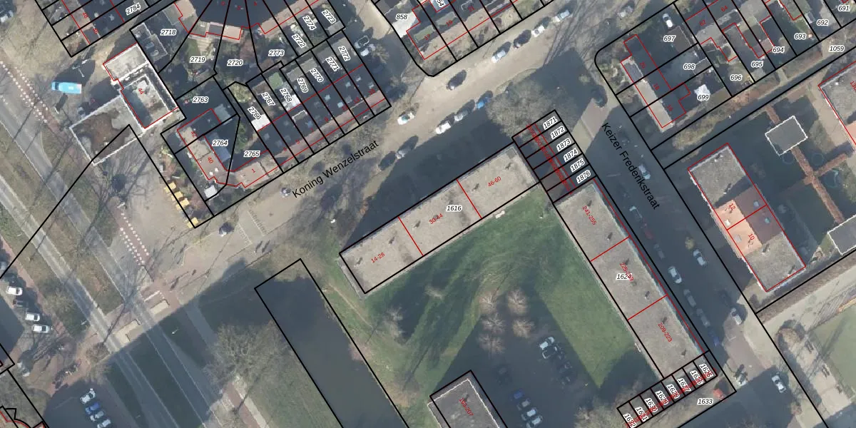 Het perceel waarop Koning Wenzelstraat 32 staat heeft een oppervlakte van 538 m². Dit is een groot perceel. De perceeloppervlakte wordt geregistreerd door het Kadaster. Gedetailleerde informatie over de maten van dit perceel kunt u vinden in het rapport Kadastrale kaart met maatvoering van Koning Wenzelstraat 32.
