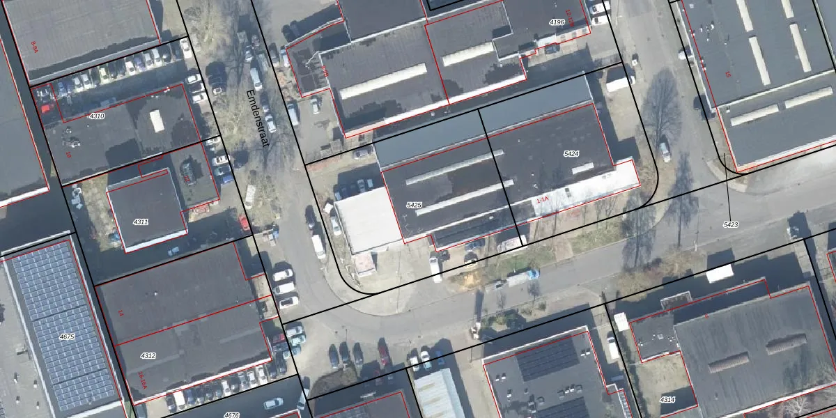 Het perceel waarop Koningsbergenstraat 1-A staat heeft een oppervlakte van 1496 m². Dit is een zeer groot perceel. De perceeloppervlakte wordt geregistreerd door het Kadaster. Gedetailleerde informatie over de maten van dit perceel kunt u vinden in het rapport Kadastrale kaart met maatvoering van Koningsbergenstraat 1-A.
