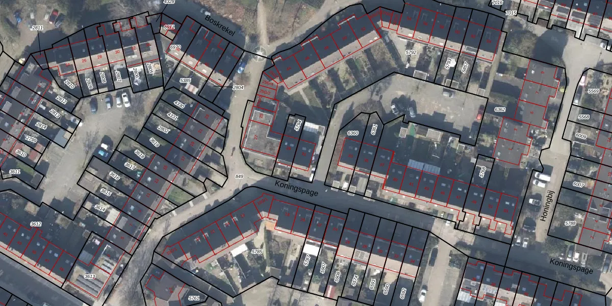 Het perceel waarop Koningspage 31 staat heeft een oppervlakte van 1942 m². Dit is een zeer groot perceel. De perceeloppervlakte wordt geregistreerd door het Kadaster. Gedetailleerde informatie over de maten van dit perceel kunt u vinden in het rapport Kadastrale kaart met maatvoering van Koningspage 31.