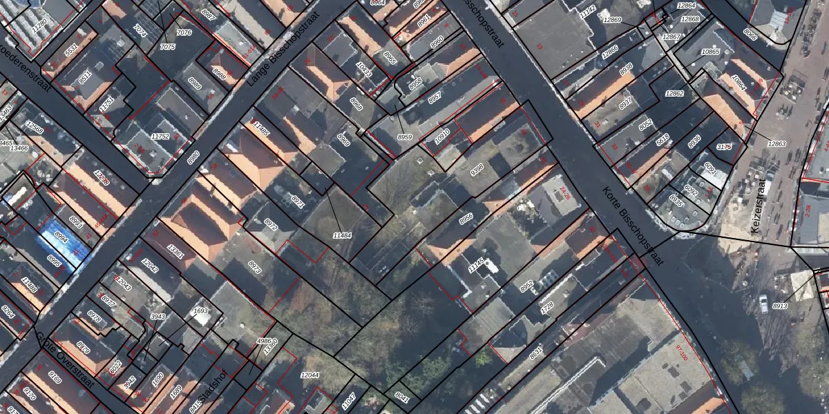 Het perceel waarop Korte Bisschopstraat 18-M staat heeft een oppervlakte van 710 m². Dit is een groot perceel. De perceeloppervlakte wordt geregistreerd door het Kadaster. Gedetailleerde informatie over de maten van dit perceel kunt u vinden in het rapport Kadastrale kaart met maatvoering van Korte Bisschopstraat 18-M.