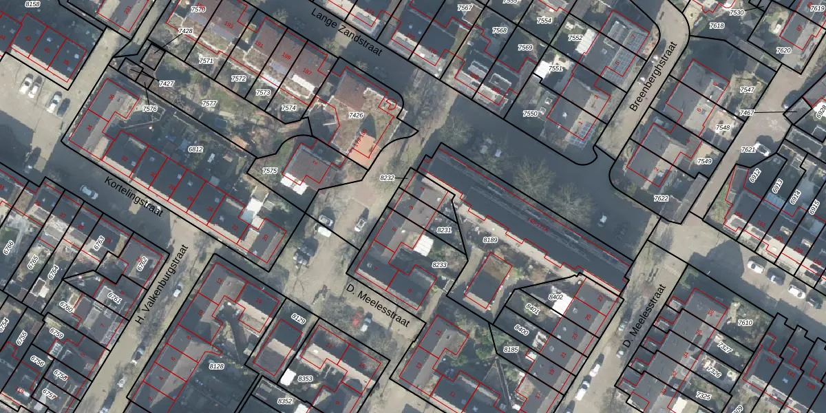 Gebruik de zoekbalk of klik op een perceel voor informatie over de adressen binnen dit perceel.