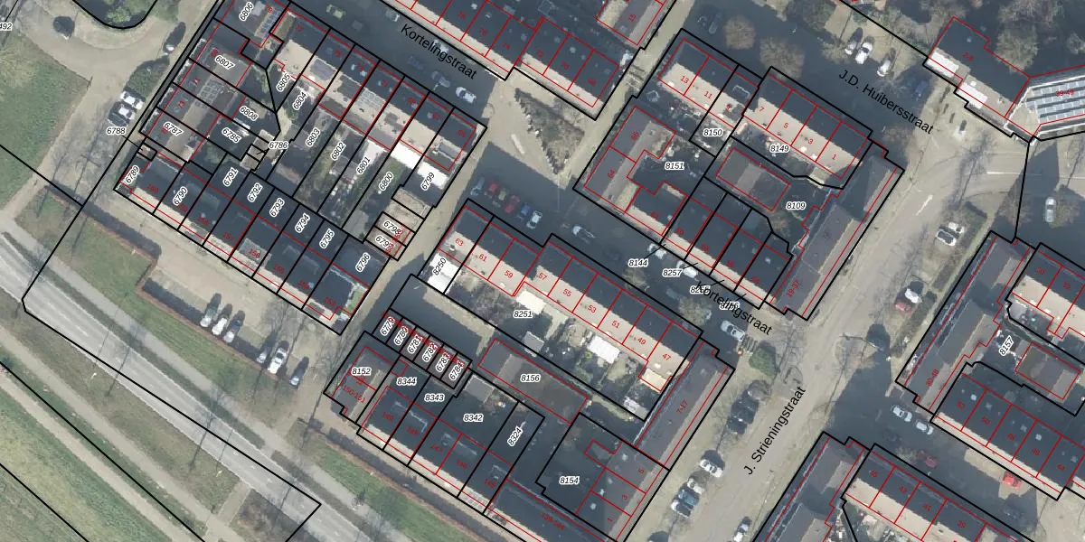 Kortelingstraat 57 is gelegen op kadastraal perceel DVT00A8251. Deze kadastrale aanduiding is uniek en wordt gebruikt door het Kadaster om eigendomsrechten en andere zakelijke rechten vast te leggen. Het perceel maakt onderdeel uit van de kadastrale gemeente Deventer.