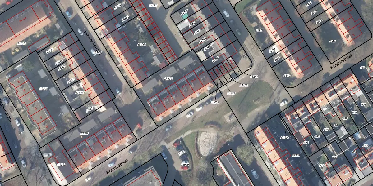 Het perceel waarop Kosterstraat 39 staat heeft een oppervlakte van 972 m². Dit is een groot perceel. De perceeloppervlakte wordt geregistreerd door het Kadaster. Gedetailleerde informatie over de maten van dit perceel kunt u vinden in het rapport Kadastrale kaart met maatvoering van Kosterstraat 39.