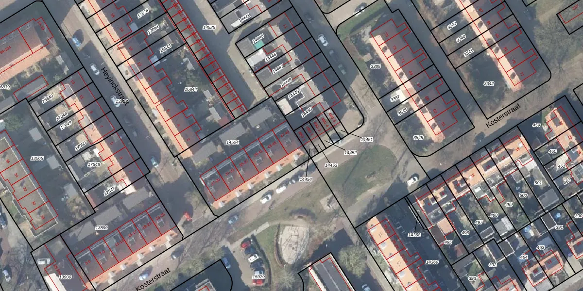 Het perceel waarop Kosterstraat 47 staat heeft een oppervlakte van 972 m². Dit is een groot perceel. De perceeloppervlakte wordt geregistreerd door het Kadaster. Gedetailleerde informatie over de maten van dit perceel kunt u vinden in het rapport Kadastrale kaart met maatvoering van Kosterstraat 47.