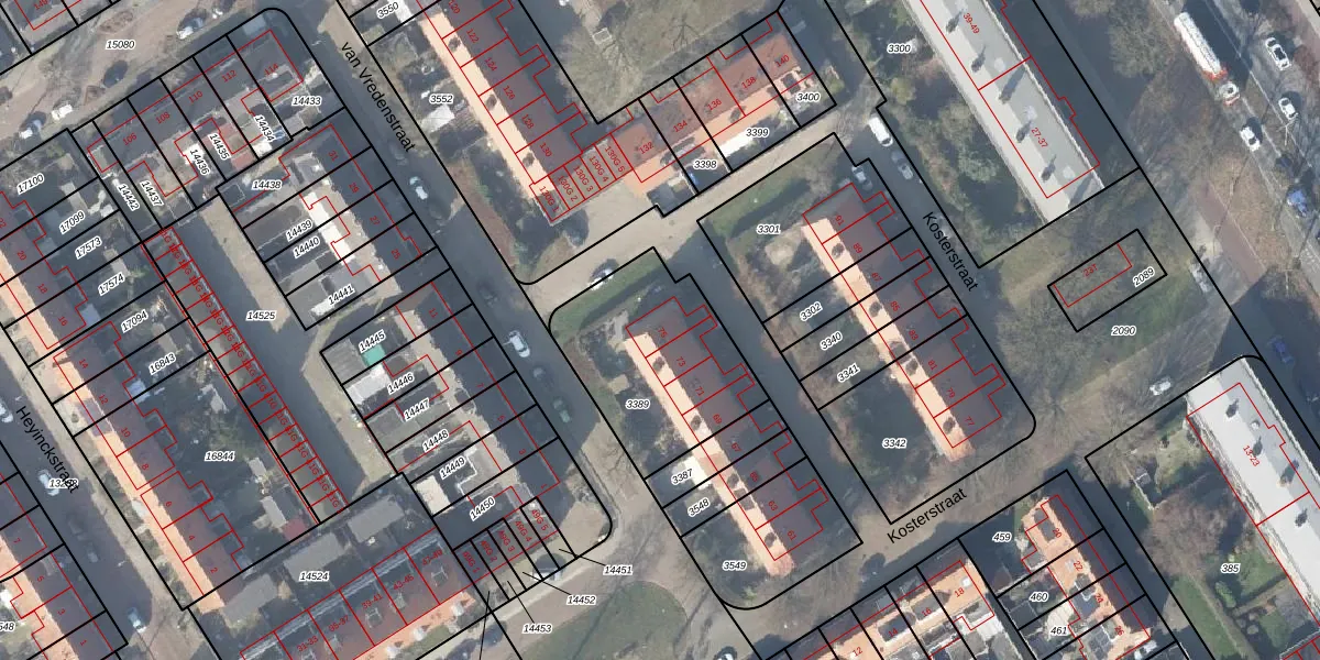 Het perceel waarop Kosterstraat 75 staat heeft een oppervlakte van 646 m². Dit is een groot perceel. De perceeloppervlakte wordt geregistreerd door het Kadaster. Gedetailleerde informatie over de maten van dit perceel kunt u vinden in het rapport Kadastrale kaart met maatvoering van Kosterstraat 75.