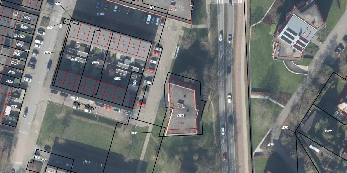 Kranenburg 57 is gelegen op kadastraal perceel DVT00L5715. Deze kadastrale aanduiding is uniek en wordt gebruikt door het Kadaster om eigendomsrechten en andere zakelijke rechten vast te leggen. Het perceel maakt onderdeel uit van de kadastrale gemeente Deventer.