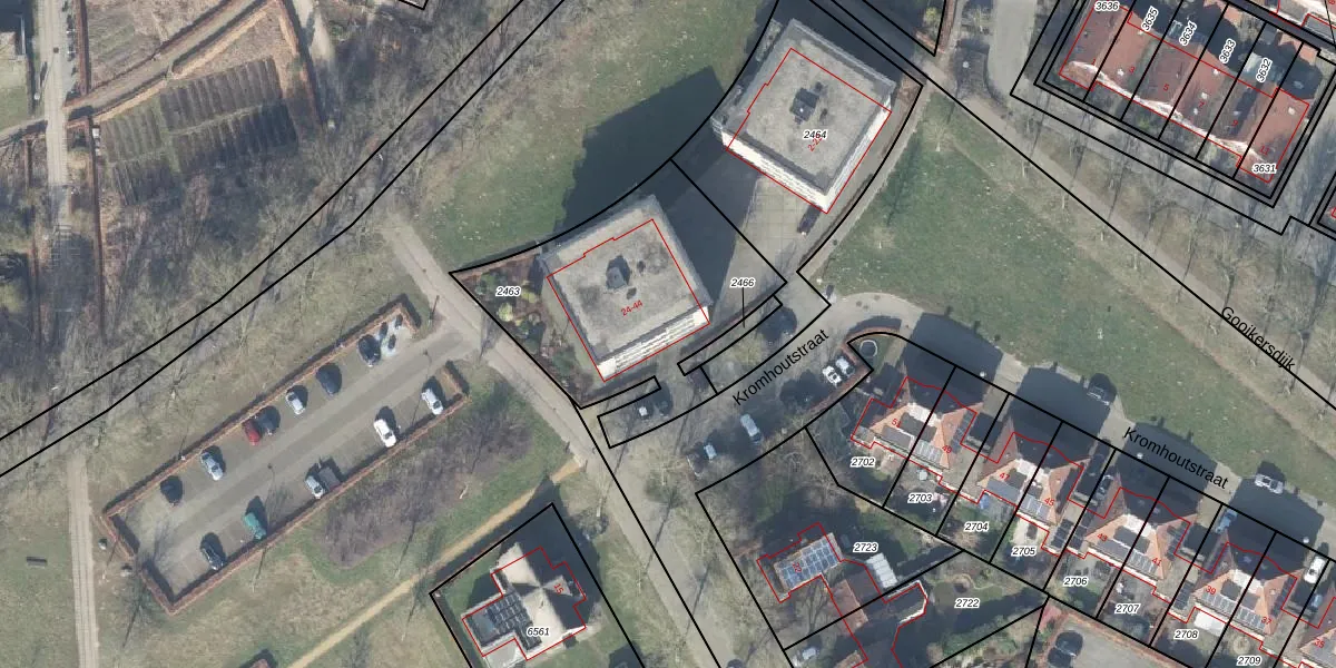 Het perceel waarop Kromhoutstraat 24 staat heeft een oppervlakte van 1030 m². Dit is een zeer groot perceel. De perceeloppervlakte wordt geregistreerd door het Kadaster. Gedetailleerde informatie over de maten van dit perceel kunt u vinden in het rapport Kadastrale kaart met maatvoering van Kromhoutstraat 24.