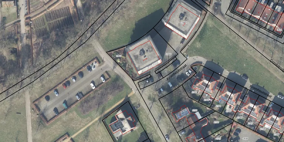 Het perceel waarop Kromhoutstraat 28 staat heeft een oppervlakte van 1030 m². Dit is een zeer groot perceel. De perceeloppervlakte wordt geregistreerd door het Kadaster. Gedetailleerde informatie over de maten van dit perceel kunt u vinden in het rapport Kadastrale kaart met maatvoering van Kromhoutstraat 28.