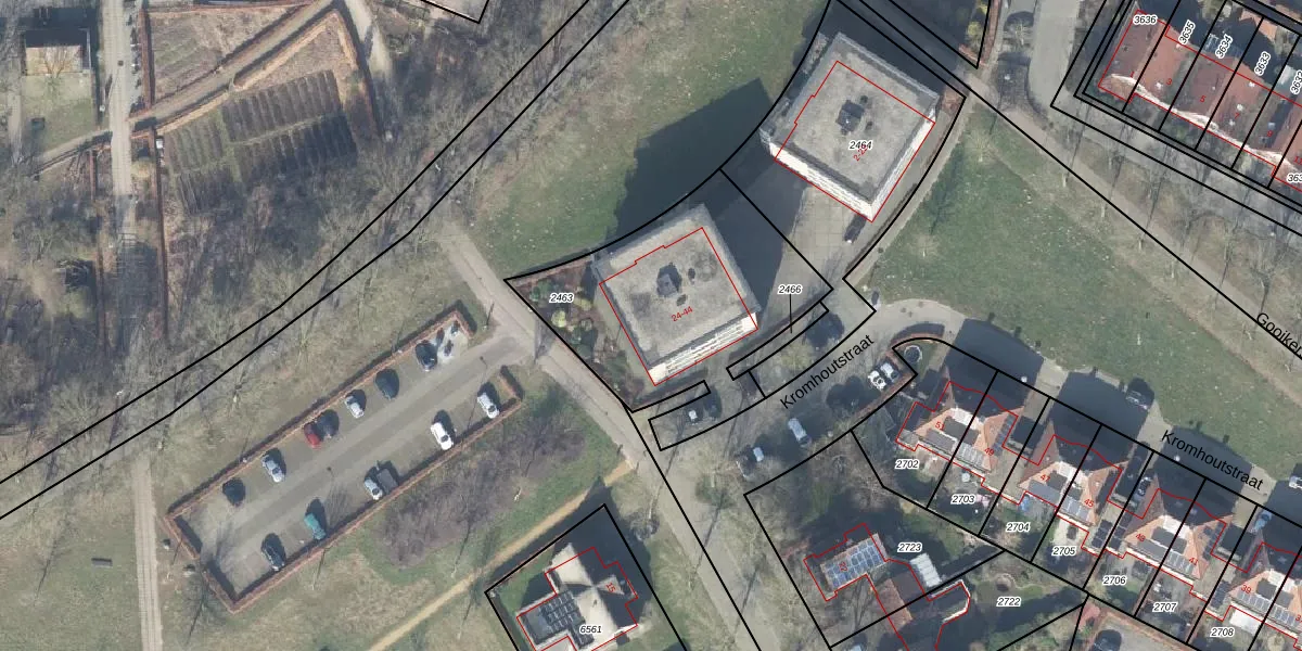 Het perceel waarop Kromhoutstraat 40 staat heeft een oppervlakte van 1030 m². Dit is een zeer groot perceel. De perceeloppervlakte wordt geregistreerd door het Kadaster. Gedetailleerde informatie over de maten van dit perceel kunt u vinden in het rapport Kadastrale kaart met maatvoering van Kromhoutstraat 40.