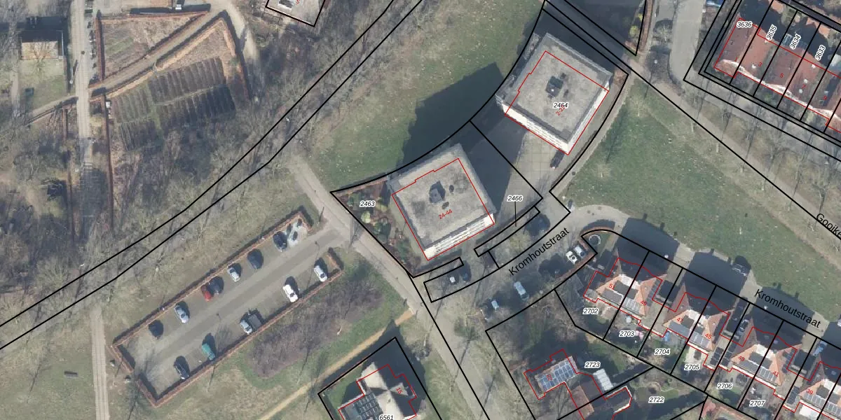 Kromhoutstraat 44 is gelegen op kadastraal perceel DVT00L2463. Deze kadastrale aanduiding is uniek en wordt gebruikt door het Kadaster om eigendomsrechten en andere zakelijke rechten vast te leggen. Het perceel maakt onderdeel uit van de kadastrale gemeente Deventer.