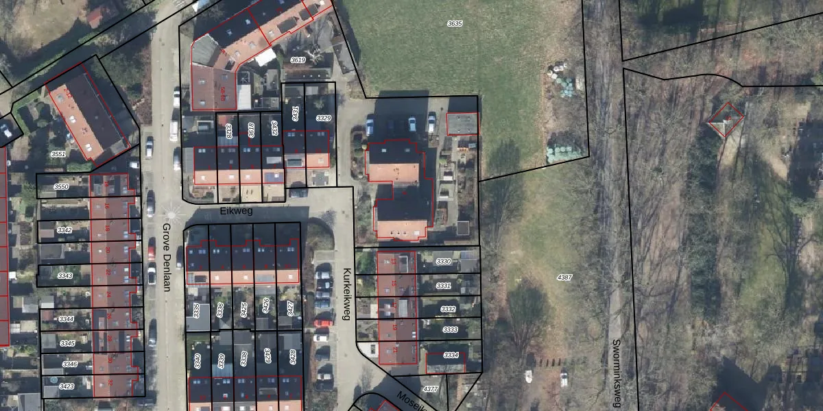 Het perceel waarop Kurkeikweg 7-D staat heeft een oppervlakte van 2552 m². Dit is een zeer groot perceel. De perceeloppervlakte wordt geregistreerd door het Kadaster. Gedetailleerde informatie over de maten van dit perceel kunt u vinden in het rapport Kadastrale kaart met maatvoering van Kurkeikweg 7-D.