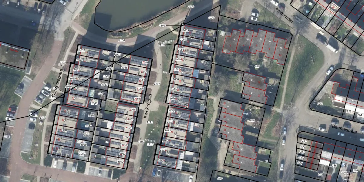 Gebruik de zoekbalk of klik op een perceel voor informatie over de adressen binnen dit perceel.