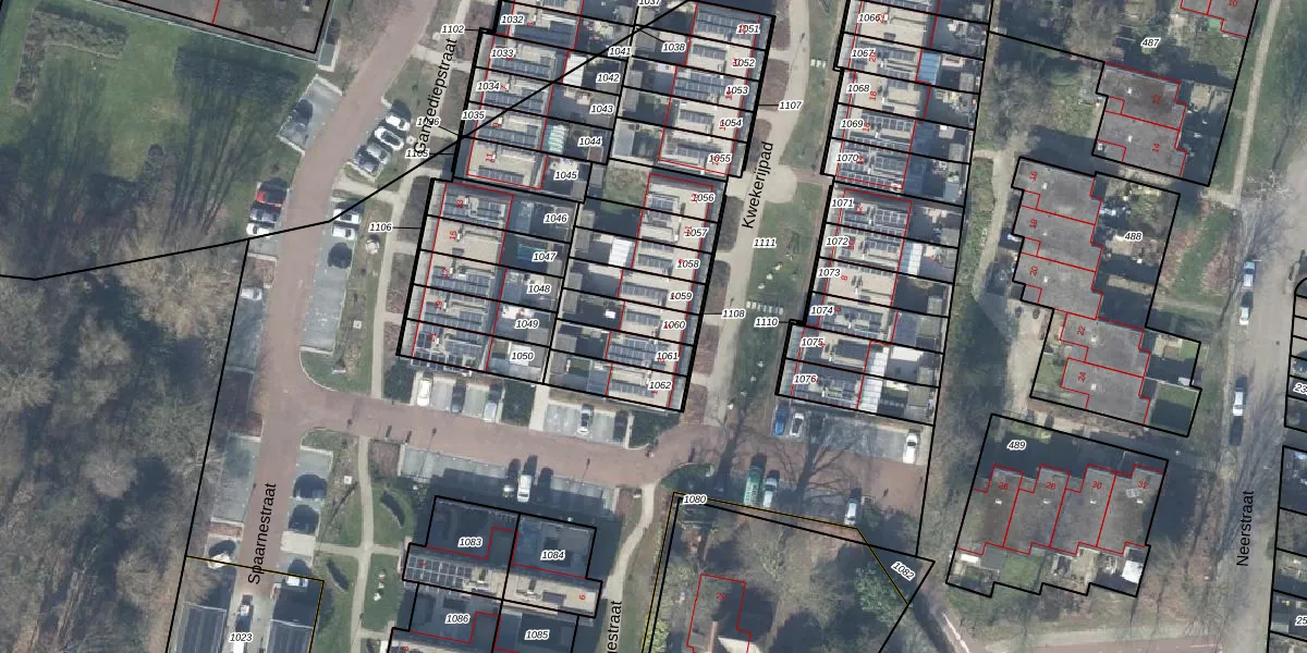 Gebruik de zoekbalk of klik op een perceel voor informatie over de adressen binnen dit perceel.